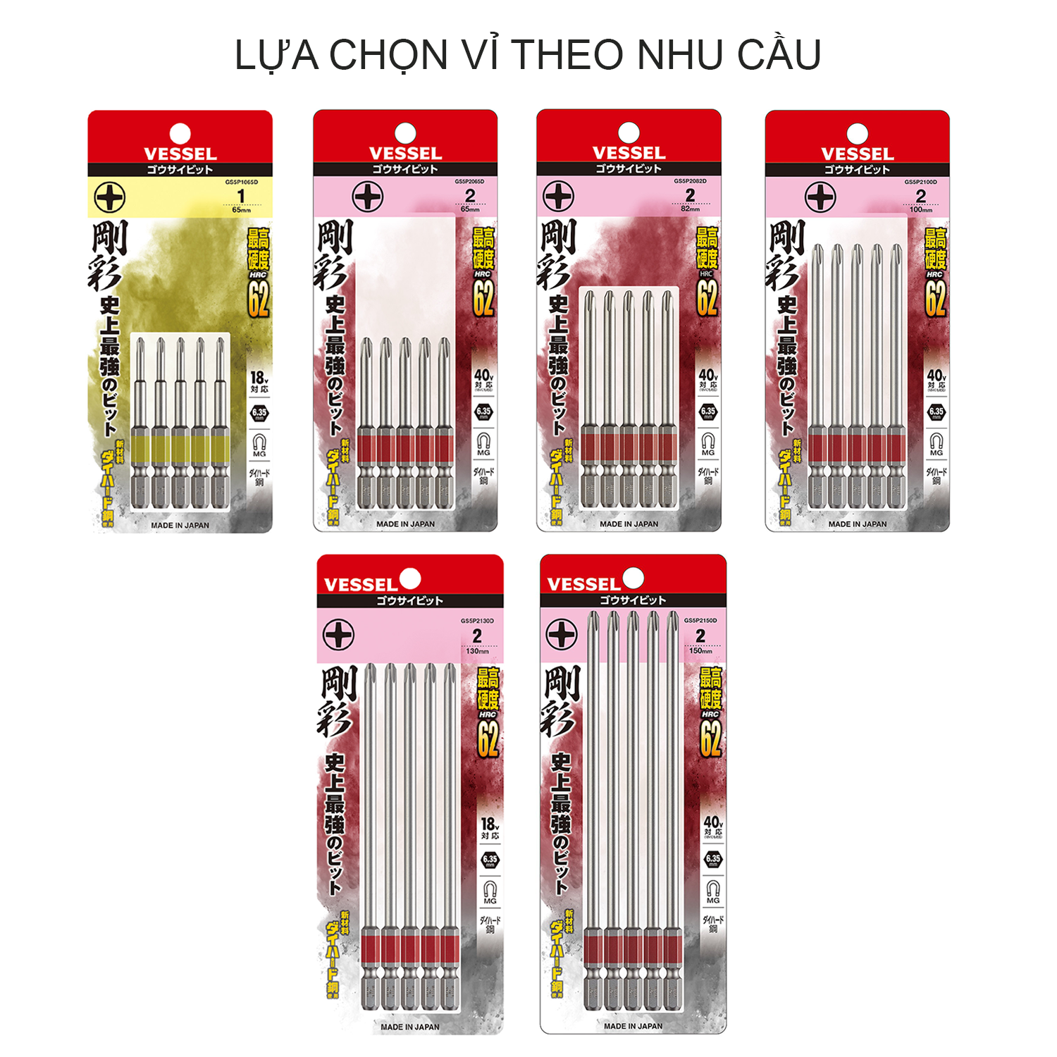 - Sản phẩm có nhiều màu khác nhau cho mỗi kích thước để dễ dàng phân biệt các loại mũi vặn vít.