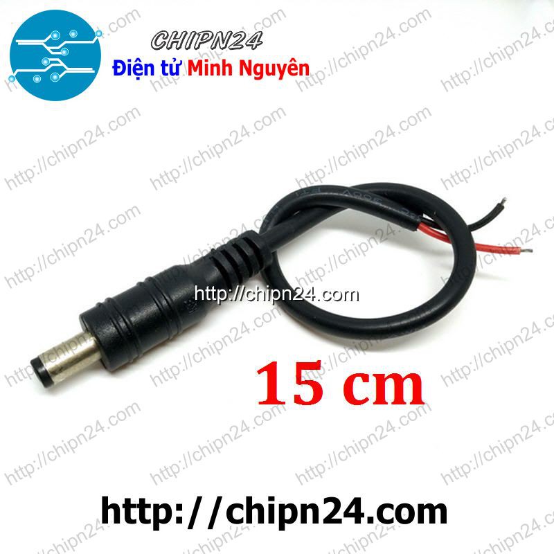- Dây nguồn DC kích thước đầu cắm 5.5*2.1mm, Phần dây dài 15cm (hoặc hơn tùy đợt hàng), dùng nối để cấp nguồn cho các thiết bị và linh kiện điện tử, camera, đèn led,...