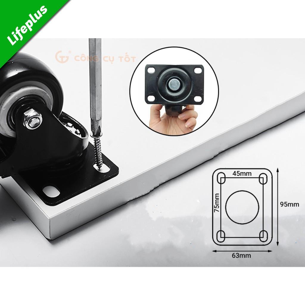 Bộ sản phẩm bao gồm: 2 Bánh xe mặt đế xoay có khóa + 2 Bánh xe mặt đế xoay không có khóa