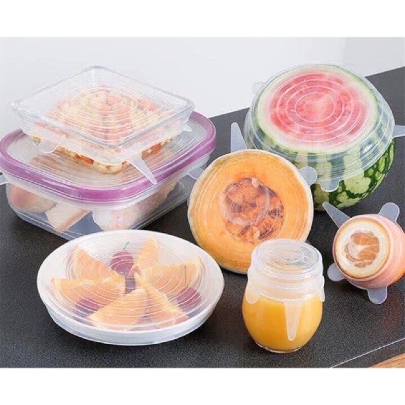 Chị em mình phần lớn đều dùng màng bọc thực phẩm nylon để bọc thực phẩm thừa , còn dư cất vào tủ lạnh . Có lẽ là ce mình bỏ luôn cái ý cũng đc , vì kiếm đc set bọc 6 miếng Silicon đủ kích cỡ .