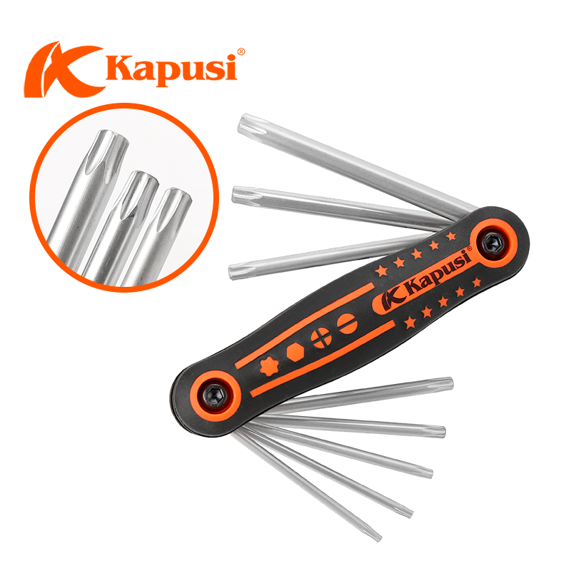 Bộ 8 chìa lục giác và lục giác bông Thép CR-V, chịu nhiệt, mạ thép chrome Kapusi Japan bộ gập gọn