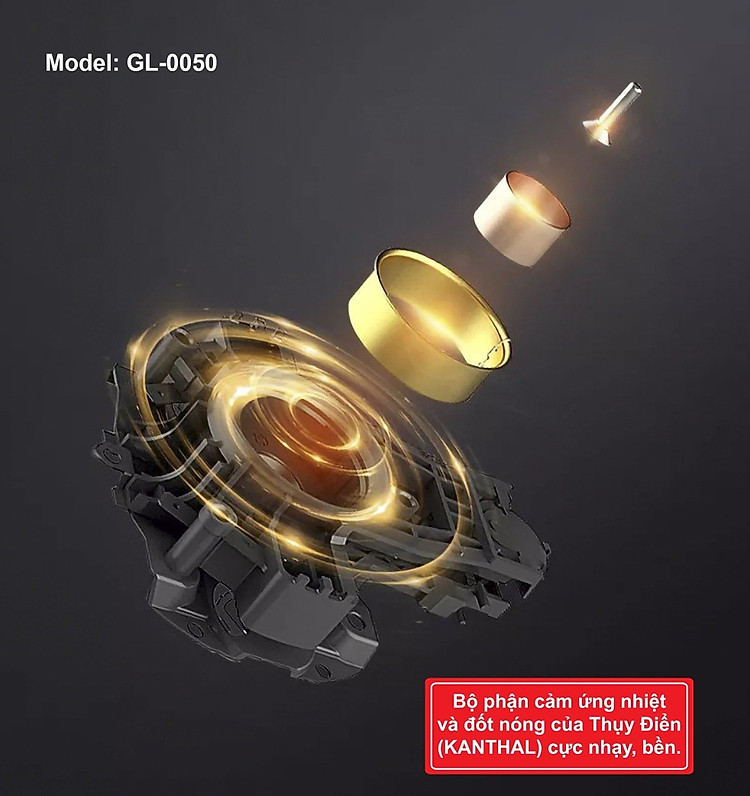 - Bộ phận đóng ngắt điện công nghệ KANTHAL của Thụy Điển, cực nhạy và an toàn khi sử dụng.