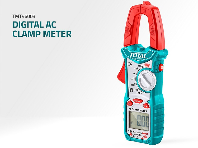 Ampe kềm đo điện AC kỹ thuật số TOTAL TMT46003 là một thiết bị đo lường điện tử đa năng, được sử dụng trong nhiều ứng dụng điện tử và điện lạnh. Với công nghệ hiện đại mà sản phẩm mang đến sẽ giúp bạn đo lường dòng điện với độ chính xác cao, kèm theo màn hình LCD 6000 số đếm có kèm đèn nền, dùng tốt trong môi trường tối. Thiết bị được thiết kế nhỏ gọn, dễ dàng mang theo.