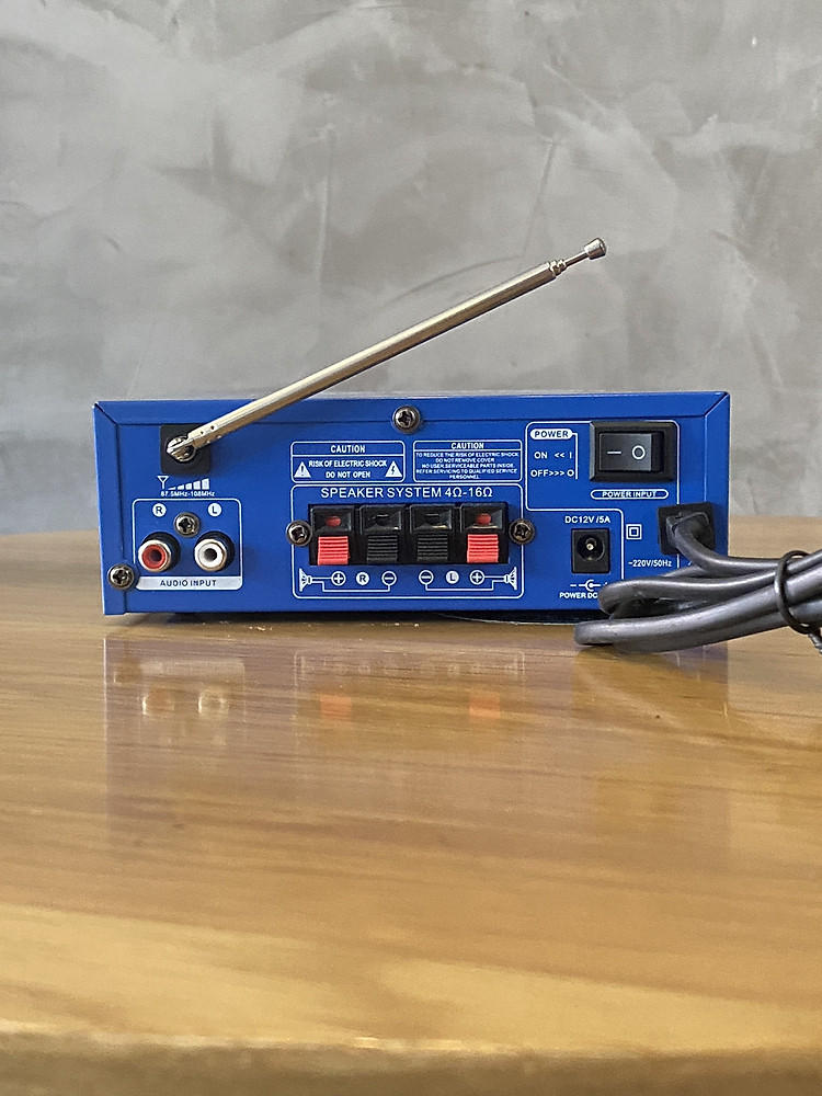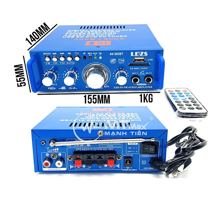 Đánh giá Ampli mini bluetooth AV-263BT:- Amply mini AV-263BT có thiết kế đơn giản, nhỏ nhắn, với chức năng khuếch đại tín hiệu rồi truyền đến thiết bị âm thanh, nhờ đó người sử dụng có thể thưởng thức âm nhạc với chất lượng âm thanh sống động. - Bộ khuếch đại âm thanh AV-263BT có thêm chức năng bắt sóng radio, đài fm. Với kích thước nhỏ và sử dụng điện 12V, amply bluetooth còn có thể dùng trên oto, gắn thêm anten sẽ có thể dùng như đài radio, nghe fm. - Công suất tối đa của amply nghe nhạc là 200w.