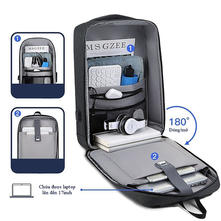 - Ngăn đựng laptop 15.6", được thiết kế chống sốc cho laptop.