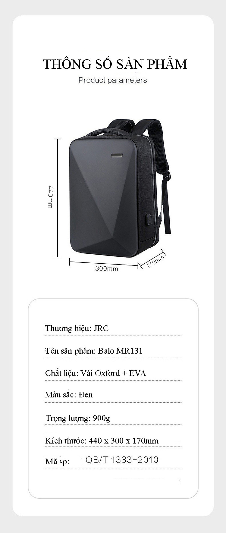 - Vải Oxford cao cấp, kết hợp với chất liệu da đem lại sự sang trọng và khả năng chống nước bền bỉ.