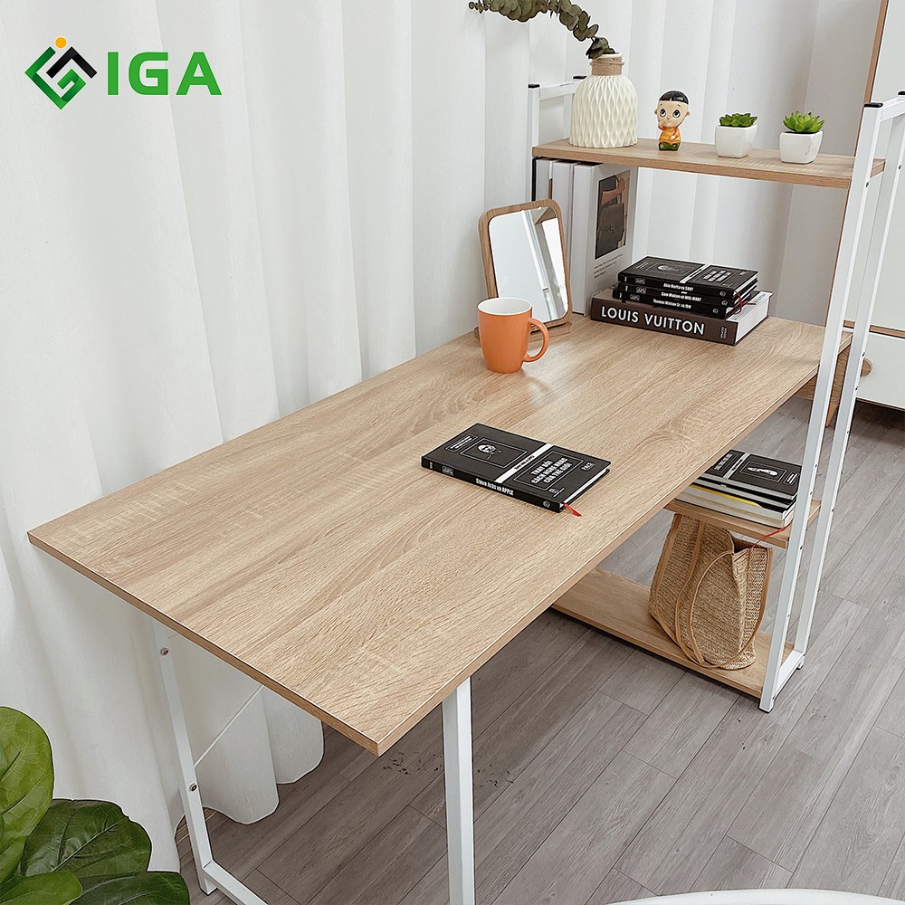 Giới thiệu Bàn Làm Việc Hiện Đại Khung Sắt Chống Dỉ, Bàn Làm Việc Kèm Kệ Sách Thương Hiệu IGEA - GM12