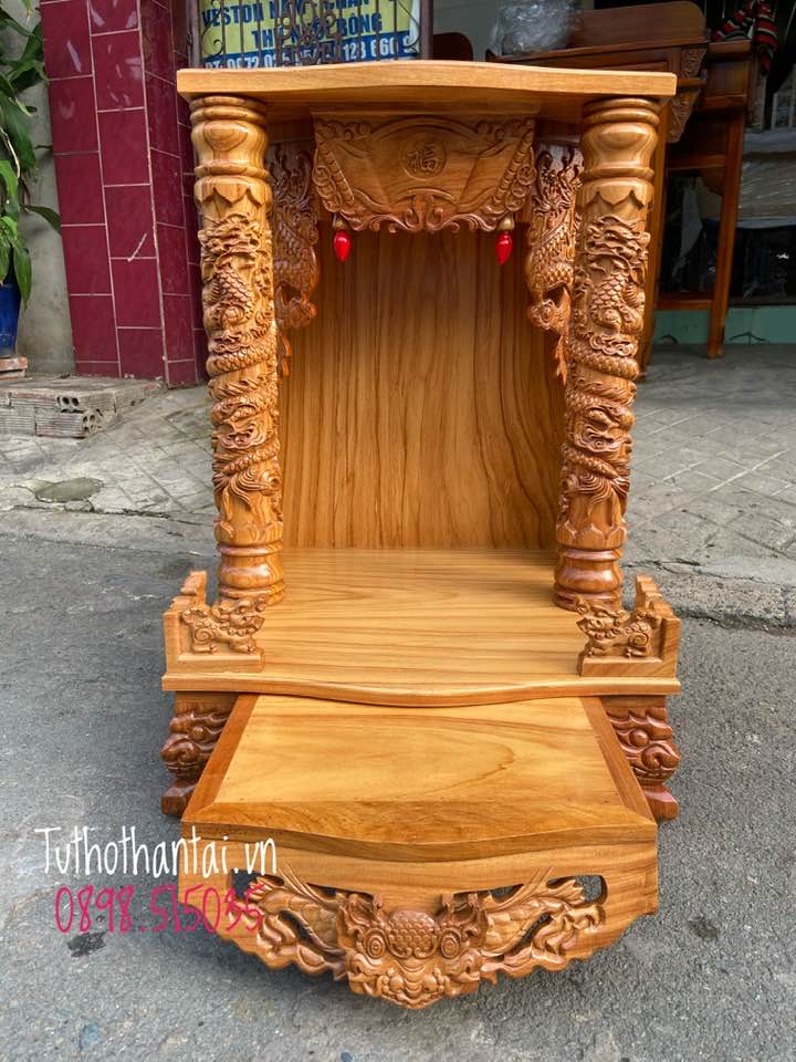Bàn thờ thần tài gỗ gõ đỏ, Ngăn kéo to, cột 10cm, chân 10cm