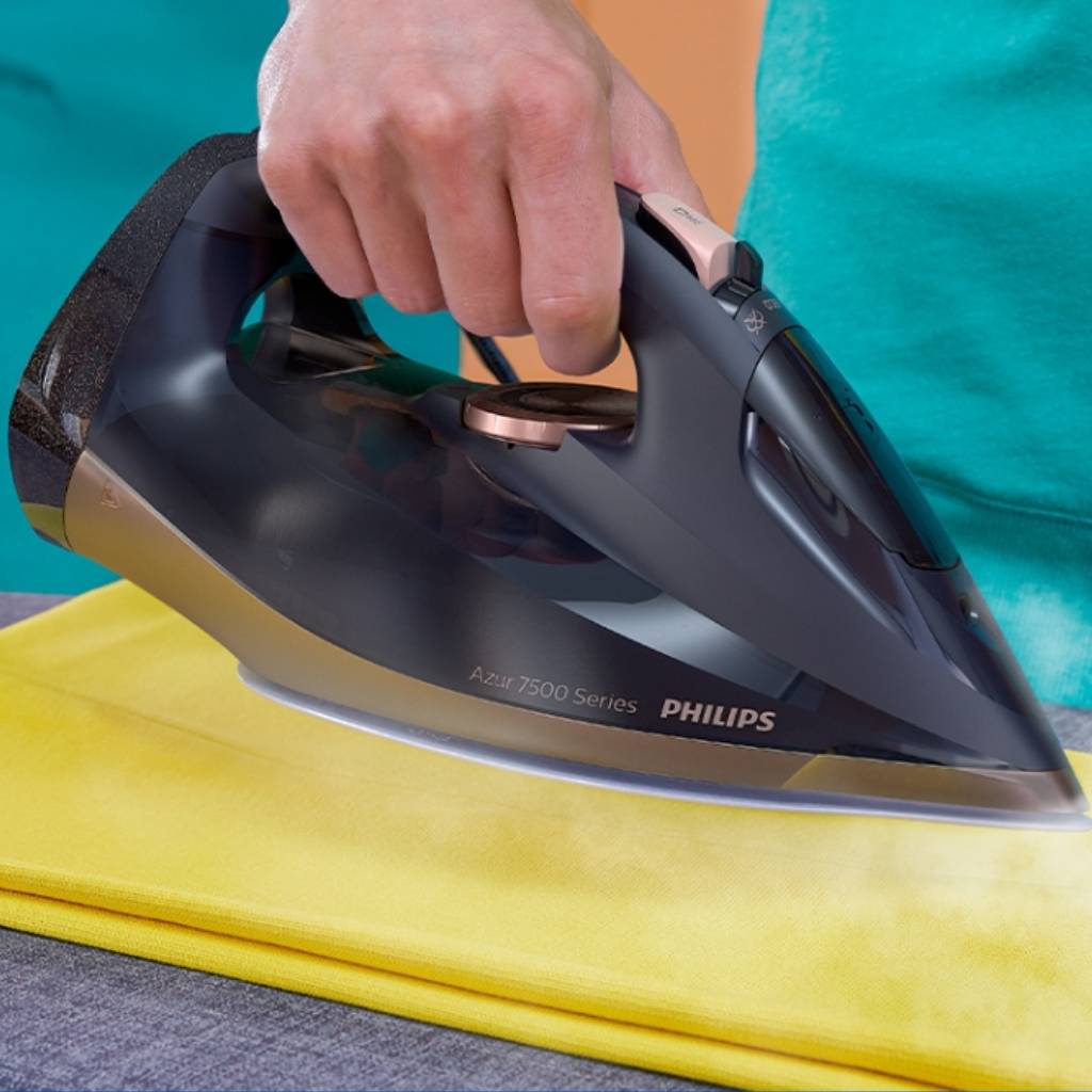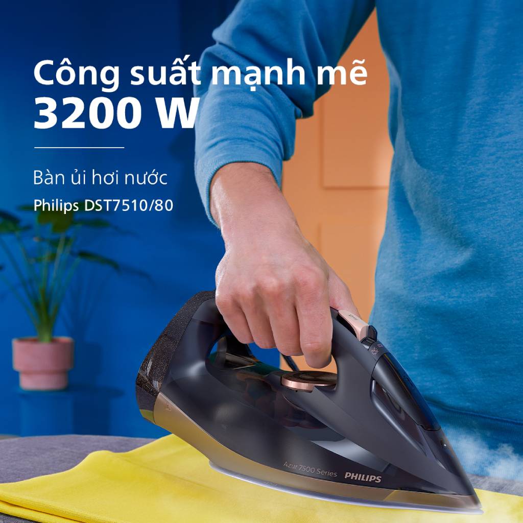 Bàn ủi hơi nước Philips DST7510/80 thiết kế gọn, dễ dàng di chuyển khi ủi quần áo và tiện cất giữ, tiết kiệm không gian. Màu sắc trang nhã tô điểm cho không gian nhà bạn thêm phần nổi bật. Dây điện dài 2m, đuôi dây xoay 360 độ không xoắn dây, không gây vướng víu khi di chuyển ủi đồ.