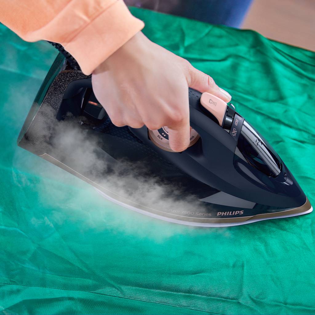 Bàn ủi PhilipsDST7510/80 có mặt đế SteamGlide Elite chống trầy xước, dễ dàng lướt êm ái trên mặt vải để ủi quần áo nhanh hơn.