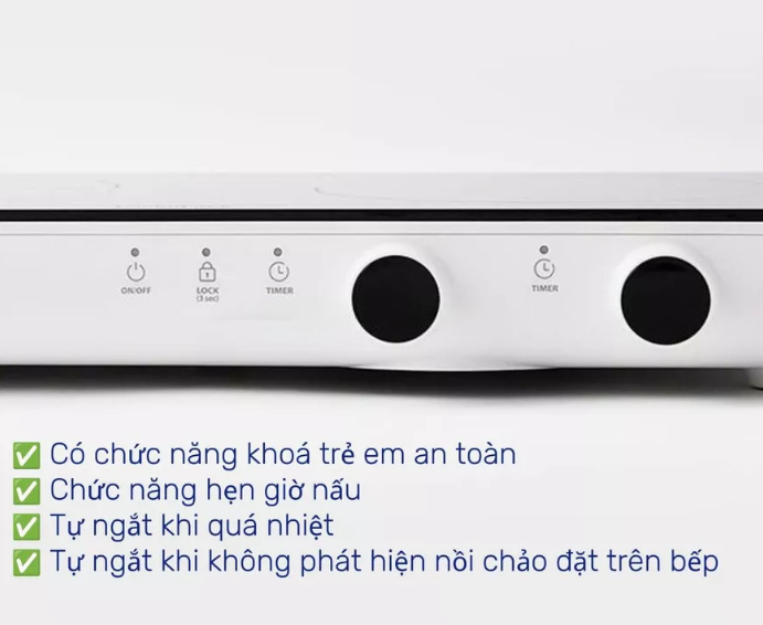 - Công suất tối ưu 2800W: Làm nóng nhanh với công suất bếp trái 1500W và bếp phải 1300W .