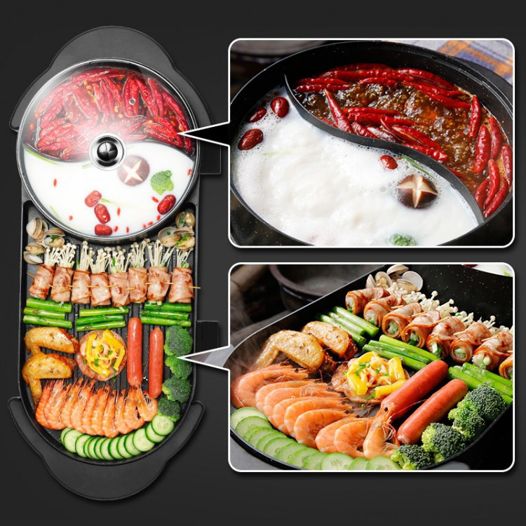 -TÊN SP:Bếp lẩu 2 ngăn+ nướng, 2 nguồn cấp điện riêng 1350wX2, 6 người