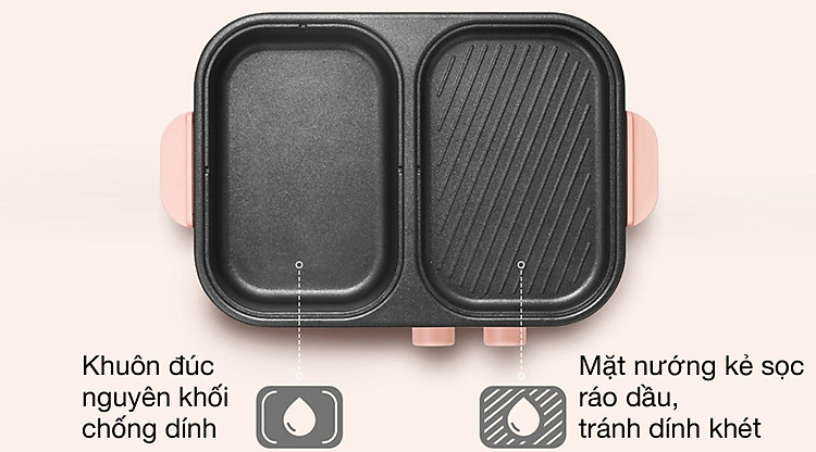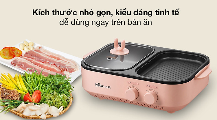 Thiết kế nhỏ gọn cùng màu hồng trẻ trung, tinh tế, bếp lẩu nướng đa năng dùng đẹp cho không gian gia đình