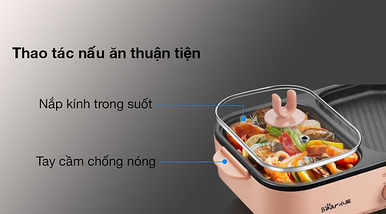 Bếp lẩu nướng đa năng Bear DKL-C12D1 sử dụng đa năng nhờ thiết kế với 2 ngăn nấu tách biệt