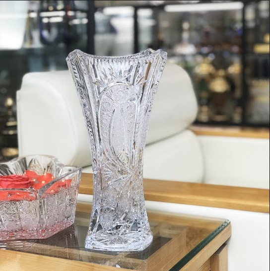 - Bình hoa pha lê cao cấp mài bông tuyết và cánh hoa