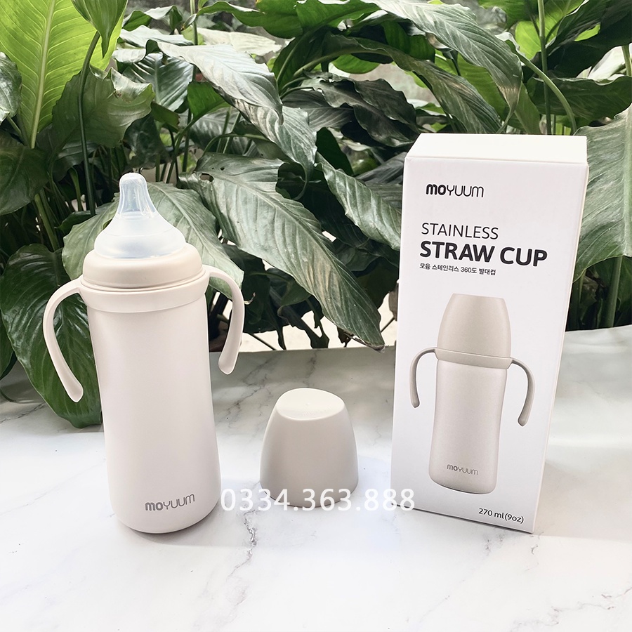 Siêu phẩm Bình Moyuum tập uống nước INOX 270ml Hàn Quốc cho bé khỏe mạnh, mẹ an tâm