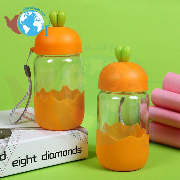 Bình nước thủy tinh vỏ bọc silicon nắp dây xách hình trái tim là vật dụng không thể thiếu cho gia đình bạn.