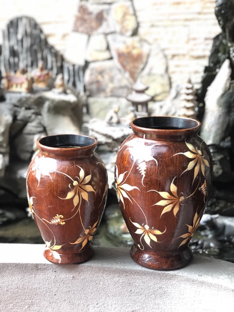 Nhà cửa & Đời sống > Trang trí nhà cửa > Bình trang trí || Bình Vò cắm hoa chân loe sứ sơn giả gỗ - Lọ hoa trang trí