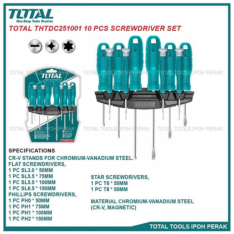 BỘ 10 TUA VÍT DẸP, BAKE, SAO VÀ TUA VÍT CHUẨN TOTAL THTDC251001 - HÀNG CHÍNH HÃNG