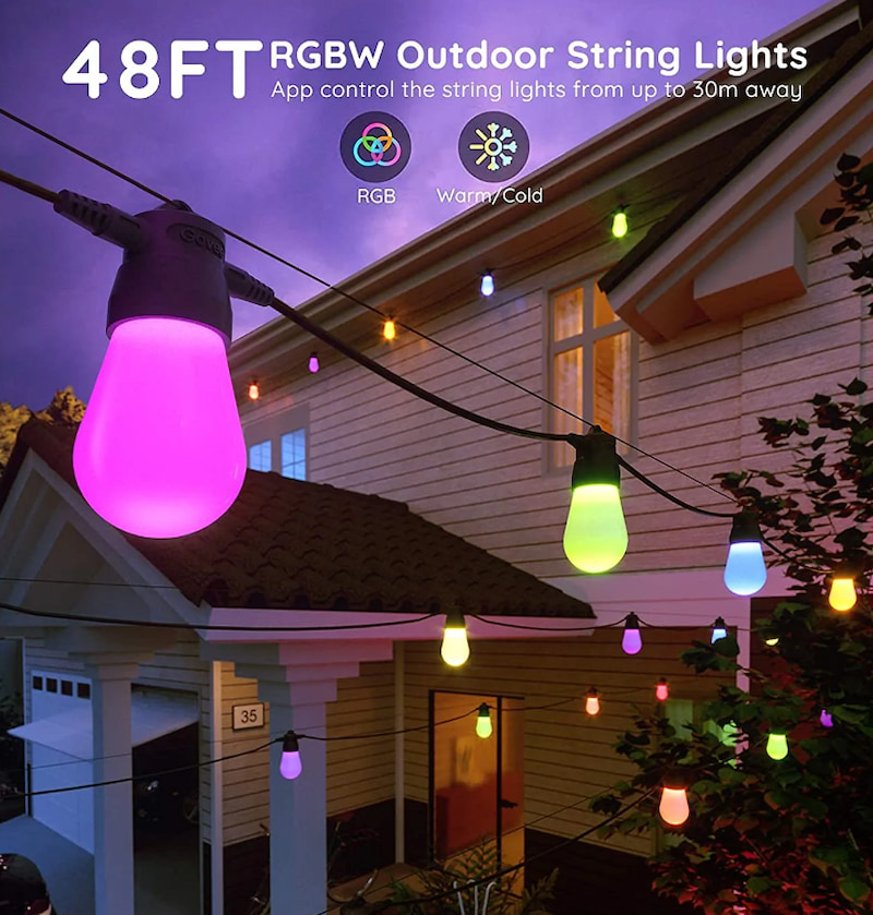 Govee RGBW 48ft Bluetooth & Wi-Fi Outdoor String Lights H7020 tạo ra những khung cảnh ngoài trời sống động, giúp cho những khoảnh khắc bên gia đình và bạn bè trở nên đặc biệt hơn. Màu sắc ánh đèn led tuyệt vời cho các khu vườn, sân trước, sân sau và ngoài trời.