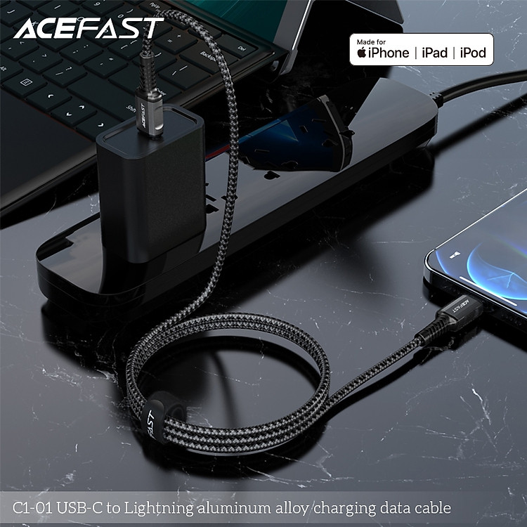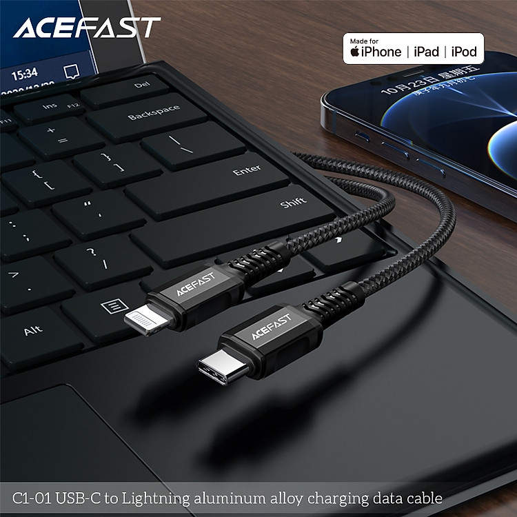 Cáp sạc dữ liệu Acefast C1-01, USB-C to ligh.tning, dòng điện lên đến 3A, chiều dài 1,2m, đầu nối bằng hợp kim nhôm, hỗ trợ sạc nhanh lên đến 30W cho i.Phone