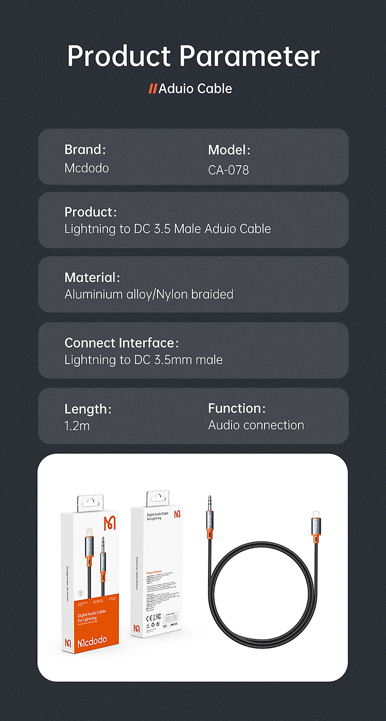 | Tên | Cáp Chuyển Đổi Mcdodo Castle Series to DC3.5 Male Cable |