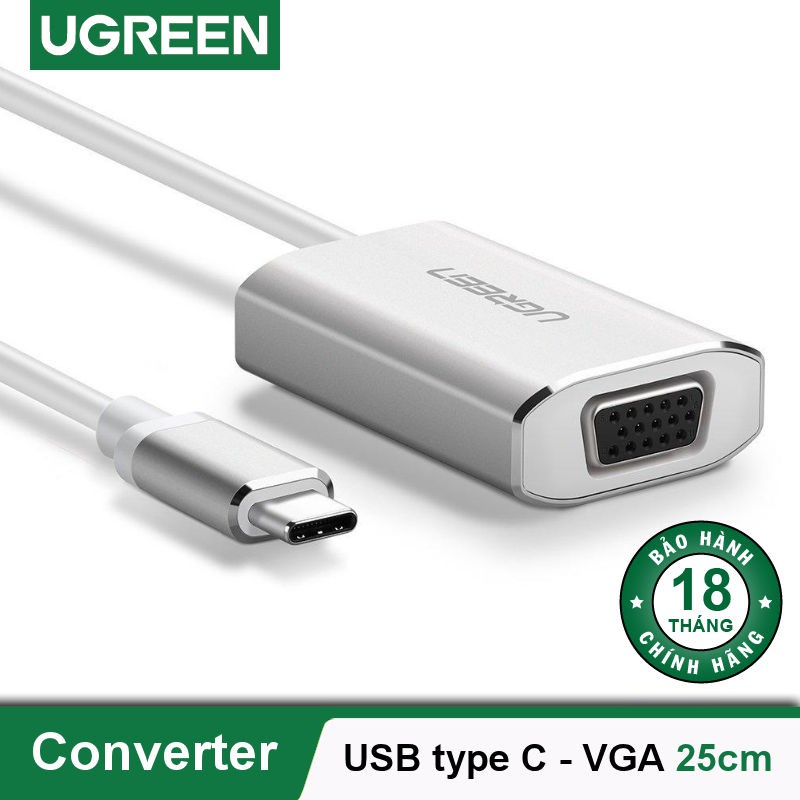 - Cáp chuyển USB Type C sang VGA cao cấp Ugreen 40866 là phụ kiện cao cấp giúp kết nối máy tính, laptop có tích hợp cổng USB-C .. với màn hình TV, máy chiếu qua chuẩn giao tiếp VGA. Ugreen 40866 cho hình ảnh và âm thanh sống động sắc nét với độ phân giải hình ảnh tối đa lên đến FullHD 1920x1080P/60Hz.