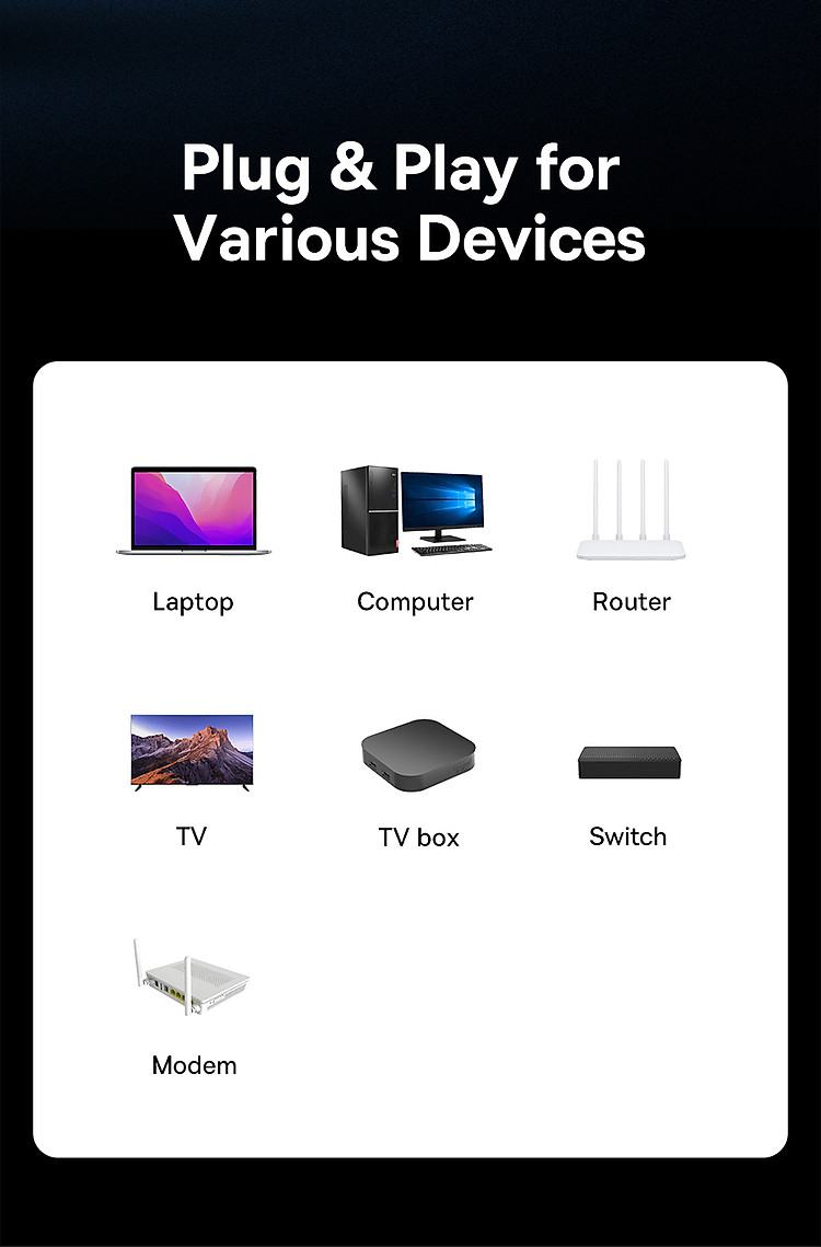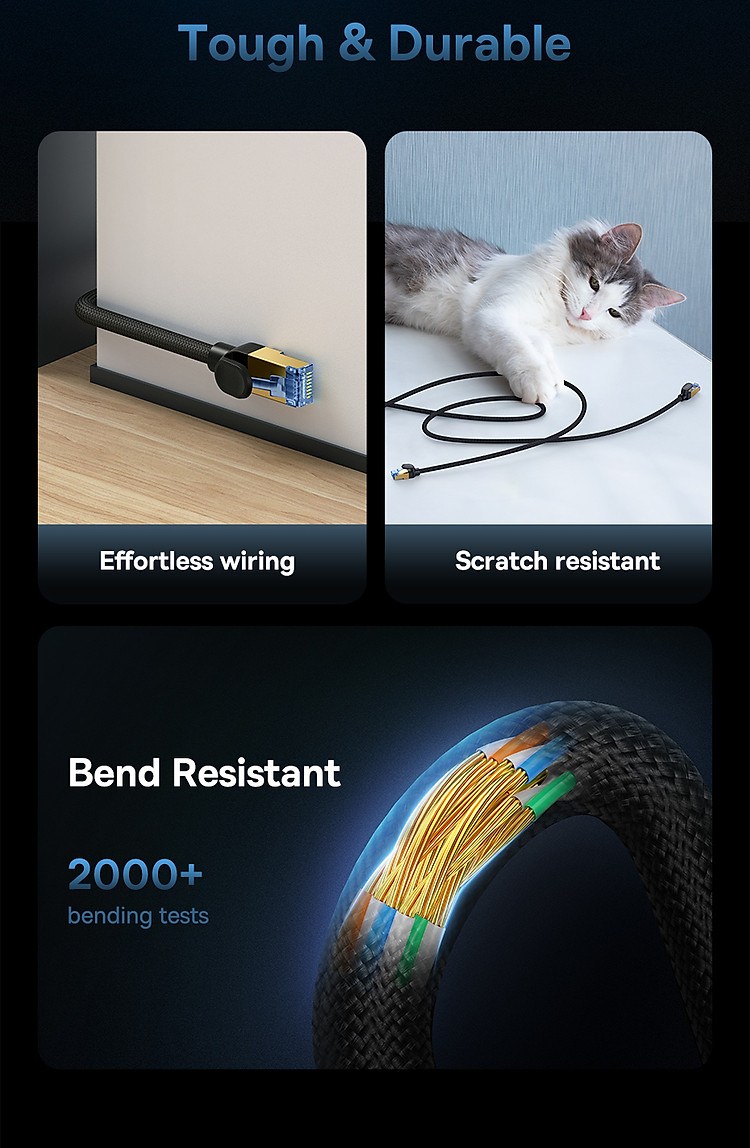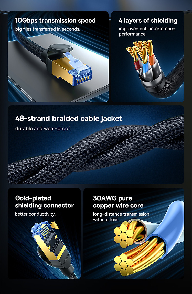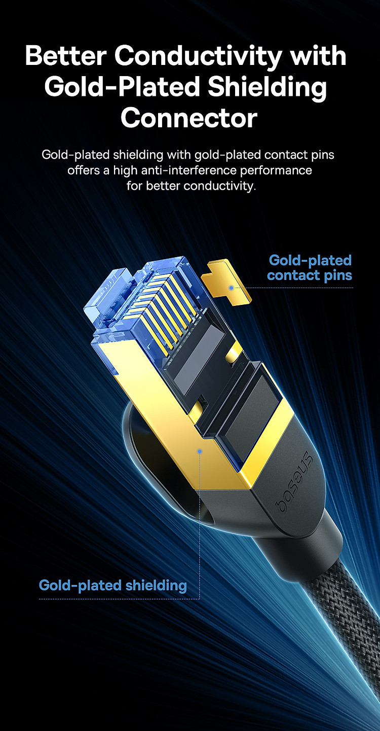Tương Thích Rộng Rãi: Cáp Mạng Lan Baseus CAT7 tương thích với mọi thiết bị có cổng Ethernet, đảm bảo rằng bạn có thể sử dụng nó cho hầu hết các thiết bị kết nối mạng.