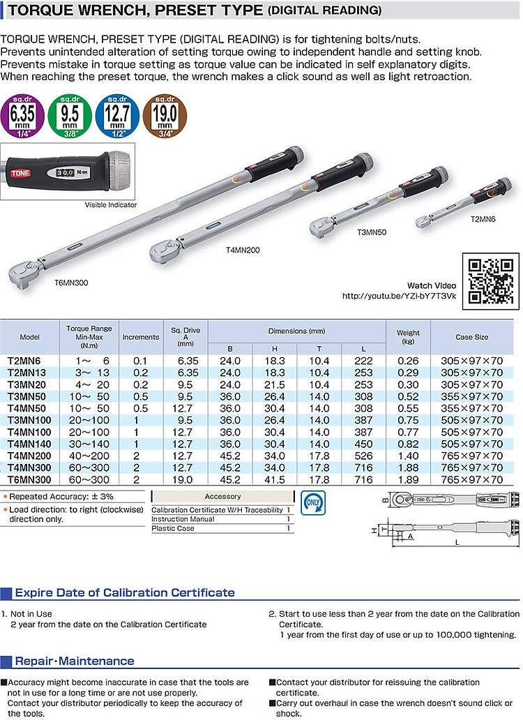 [CHÍNH HÃNG ]Cần Siết Lực 1/2" (Loại Cài Đặt Trực Tiếp) TONE T4MN300-A