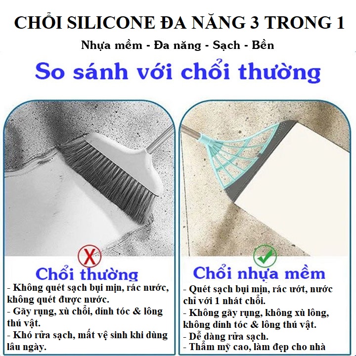 Chổi Quét Nhà Silicone Thông Minh Đa Năng này giúp cho việc quét dọn nhà cửa của bạn trở nên thật đơn giản, nhanh chón, giúp nhà bạn luôn sạch sẽ, gọn gàng.