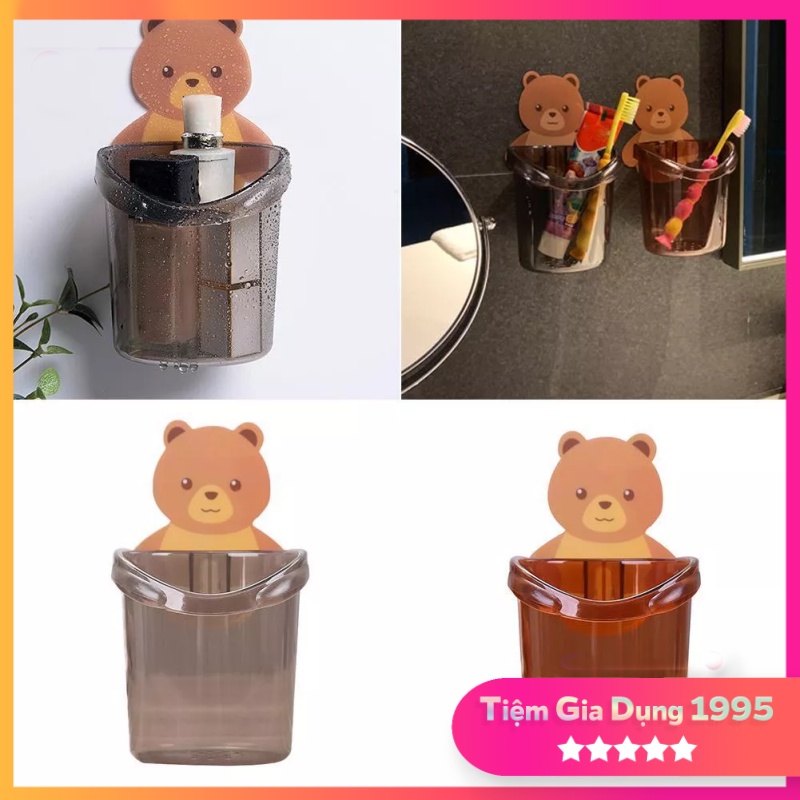 Cốc dán tường để bàn chải đánh răng hình gấu có lỗ thoát nước tiện lợi
