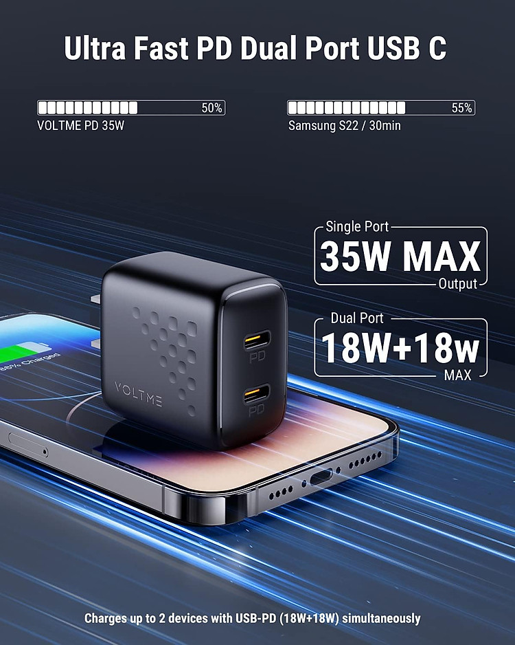 | Tên | Cốc Sạc Nhanh Voltme Revo 35 Duo Lite Dual-port PD 35W Wall Charger with GaN Tech |