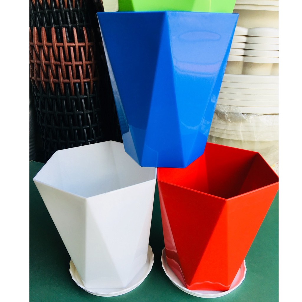 Giới thiệu Combo 2 Bộ Chậu Nhựa Trồng Cây Kim Cương, Chậu Bát Giác, Chậu Lục giác + Đĩa Lót Chậu