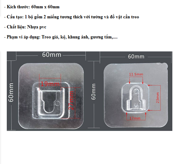 - Cấu tạo: 1 bộ gồm 2 miếng tương thích với tường và đồ vật cần treo