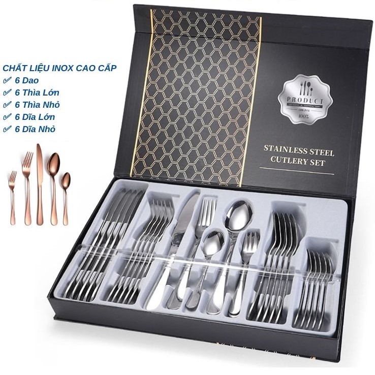 - Bộ dao dĩa thìa mạ vàng gồm 30 chi tiết sang trọng