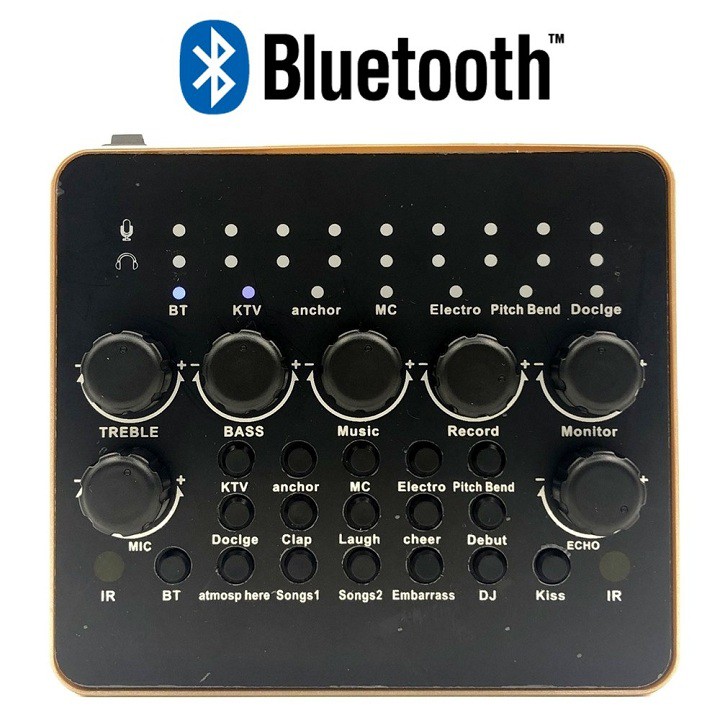 Soundcard hát live V10 được tích hợp nhiều hiệu ứng âm thanh, tiếng vỗ tiếng nhạc cỗ vũ, tiếng hò reo,… làm méo giọng. Với núm xoay tròn đã có thể giúp người sử dụng dễ dàng tăng giảm Treb, Bass, Echo của giọng hát của mình. Điều đó sẽ đem lại cho người sử dụng những giây phút thư giãn, những bản thu âm chân thực nhất.