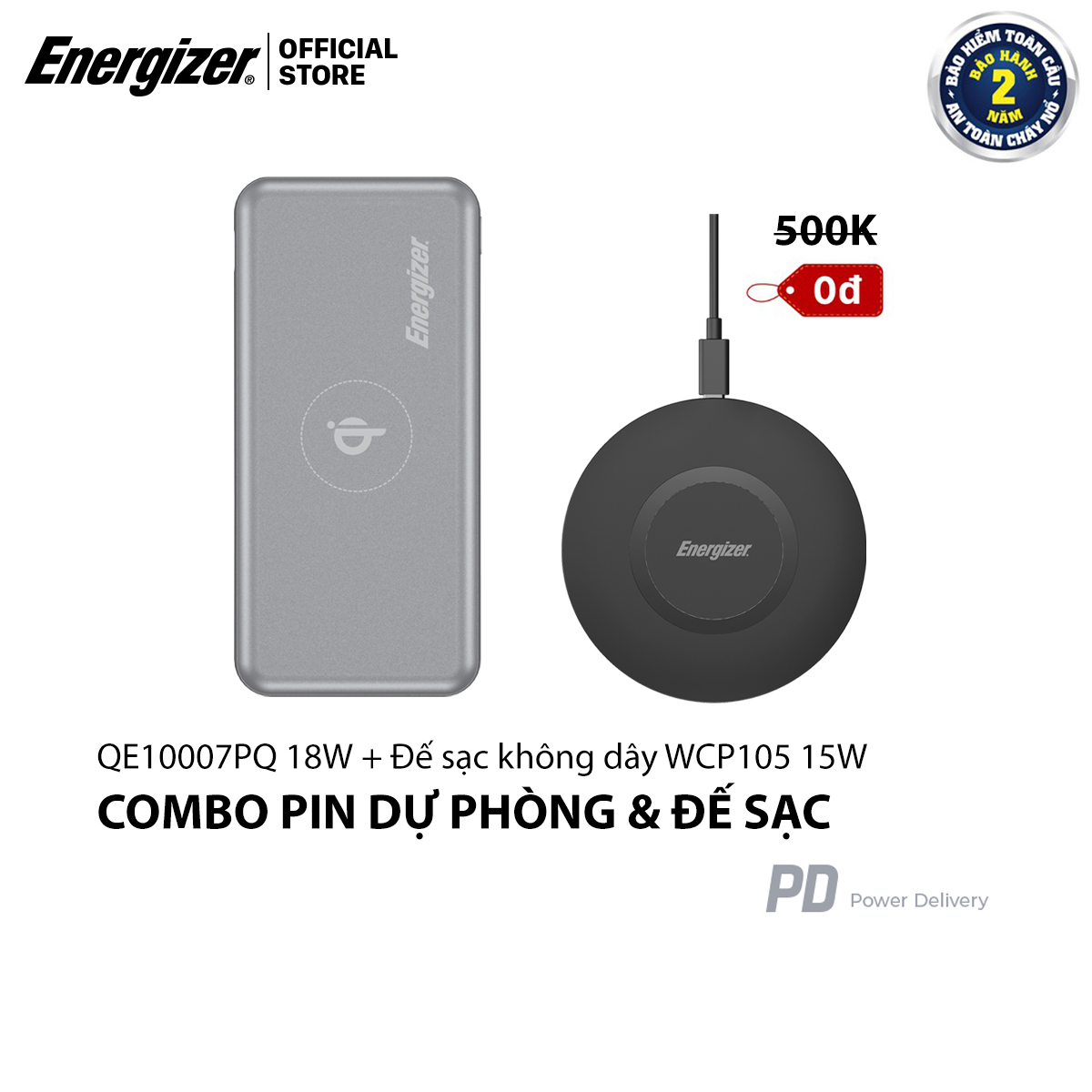 | Model | Combo Pin sạc dự phòng Energizer QE10007PQ + Đế sạc không dây WCP105 |