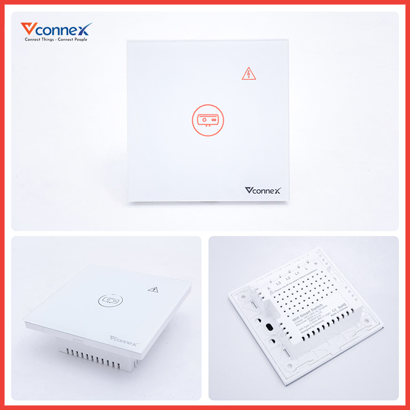 Giới thiệu Công tắc bình nóng lạnh chống giật, không viền, Wifi 2.4 Gz, Vconnex