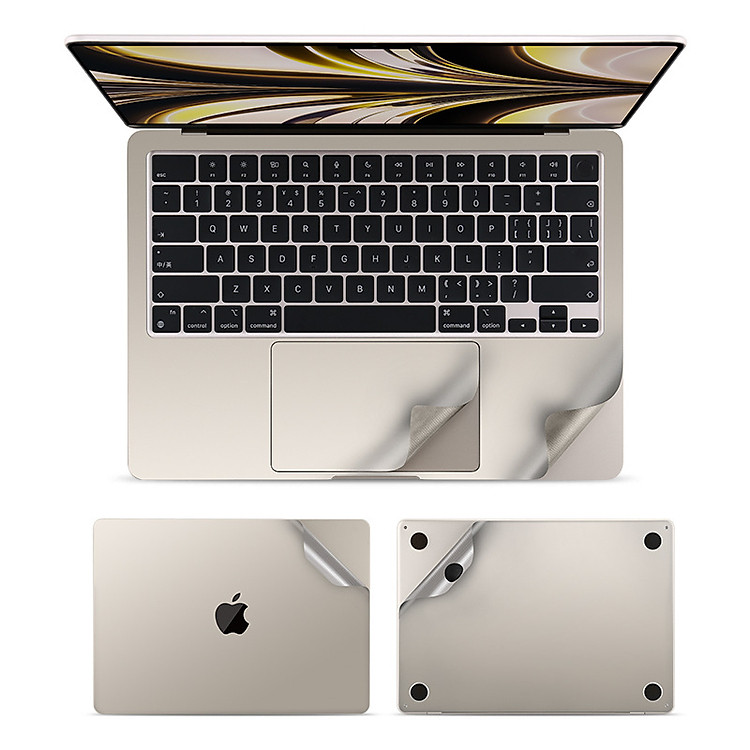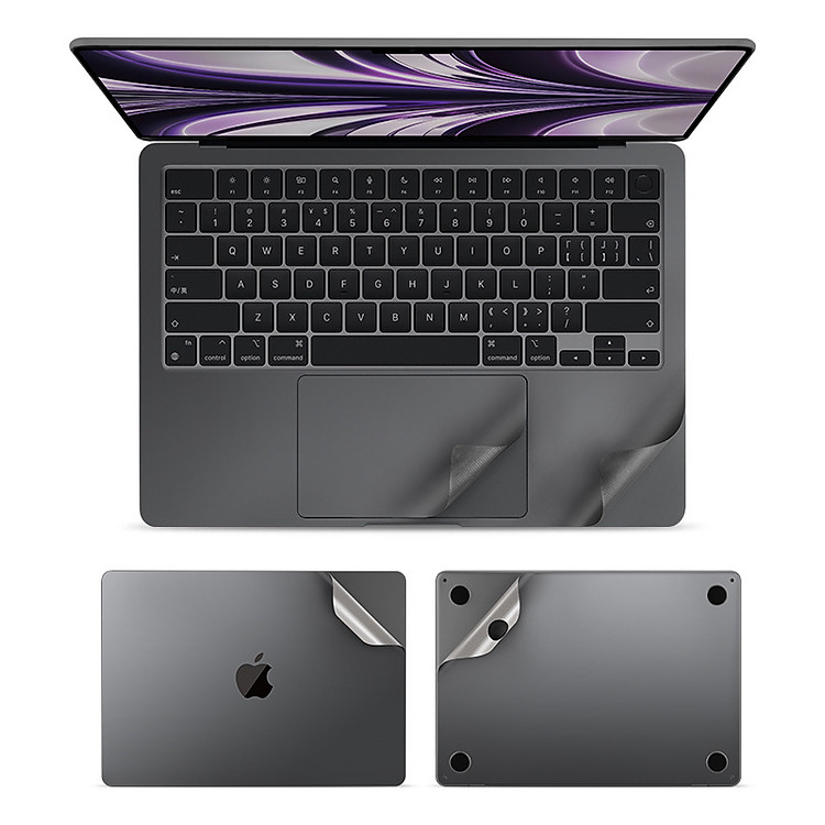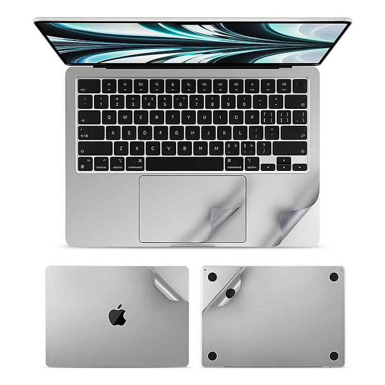 - Bộ 5in1 bao gồm: Mặt lưng- Mặt đáy- Dán kê tay- Dán Trackpad- Dán màn hình