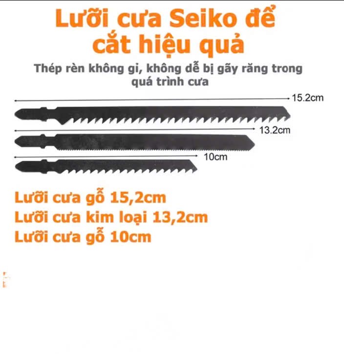 Lắp lưỡi cưa tương ứng ( lưỡi cưa kim loại, lưỡi cưa gỗ , lưỡi cưa gỗ - nhựa ...) . Mâm cặp bằng thép, có thể nhanh chóng thay thế lưỡi cưa bằng cách xoay mà không cần tháo rời.