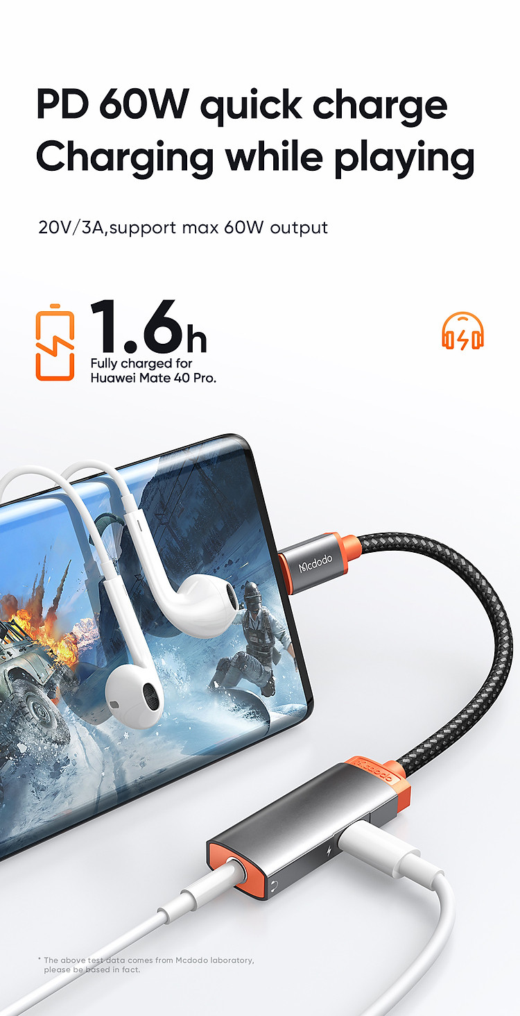 Sản phẩm được trang bị công nghệ PD (Power Delivery) với khả năng truyền dữ liệu nhanh chóng và sạc nhanh với tốc độ tối đa lên đến 60W. Ngoài ra, sản phẩm còn hỗ trợ truyền tín hiệu âm thanh chất lượng cao từ các thiết bị có cổng âm thanh 3.5mm sang các thiết bị có cổng Type-C như máy tính, smartphone, máy nghe nhạc,