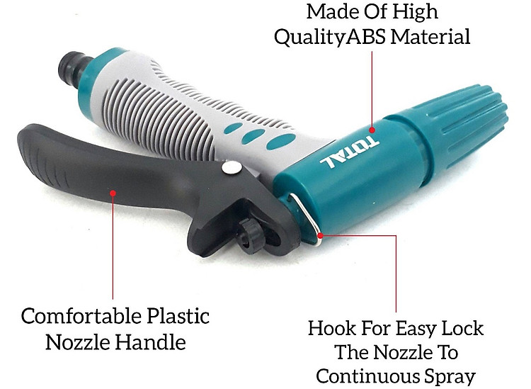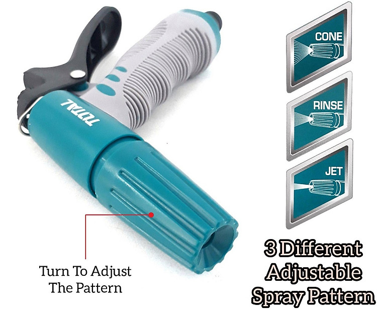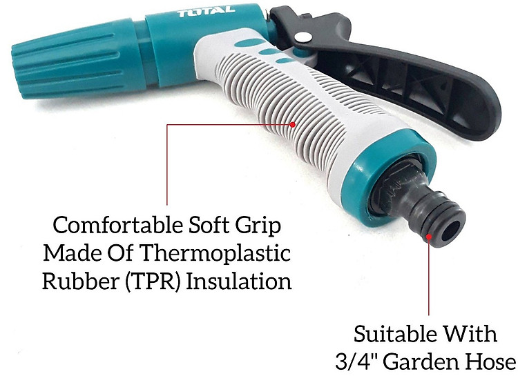 Đầu phun nước máy xịt rửa 3/4" chuyên dụng TOTAL THWS010301 có thiết kế tay cầm dạng bóp nên dù sử dụng thời gian dài vẫn không bị mỏi hoặc đau tay