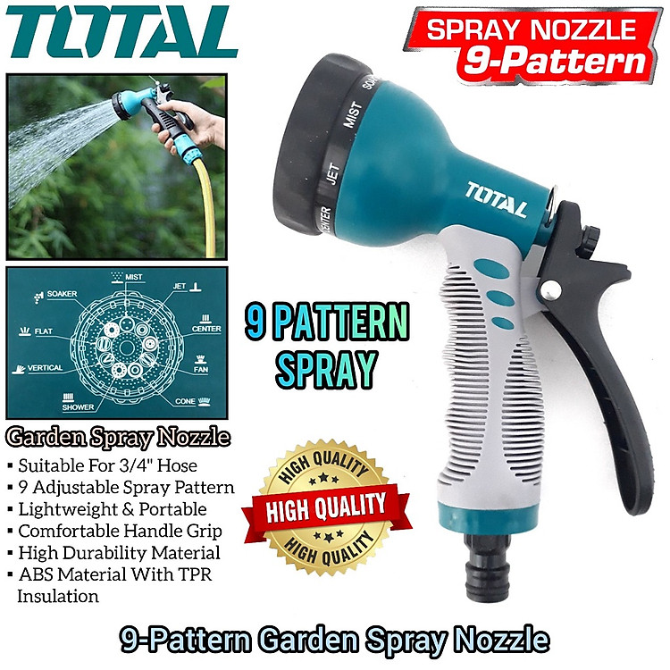 Đầu phun nước máy xịt rửa 3/4" chuyên dụng TOTAL THWS010901 là thiết bị đầu nối chuyên dụng với ống nước để tạo ra nhiều loại tia nước khác nhau, phục vụ cho nhu cầu rửa xe, tưới cây