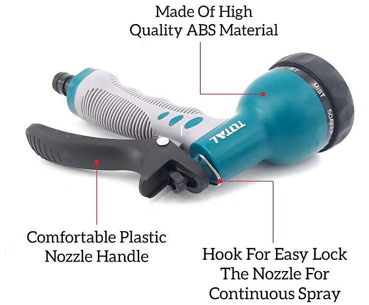 Đầu phun nước máy xịt rửa 3/4" chuyên dụng TOTAL THWS010901 có thiết kế tay cầm dạng bóp nên dù sử dụng thời gian dài vẫn không bị mỏi hoặc đau tay