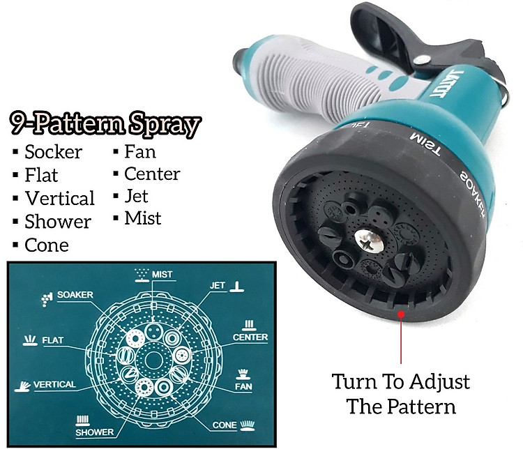 - Phun nước đa năng: Sản phẩm có thể phun nước với nhiều kiểu phun khác nhau như phun bình thường, phun bụi, phun mưa, vv.