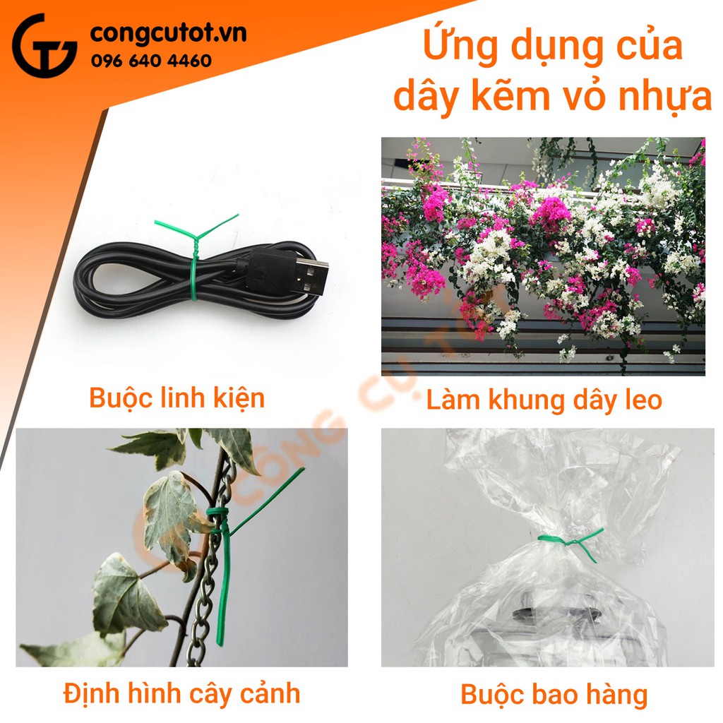 Ứng dụng trong việc buộc gọn các sản phẩm nhỏ, các loại dây điện, bao hàng, kiện hàng,... Ngoài ra còn rất thích hợp cho các nhà làm vườn chuyên nghiệp để trang trí cây cảnh, cố định, tạo hình cây cảnh