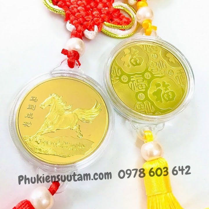 | Mô tả sản phẩm | Dây treo phong thủy Hình Con Ngựa Mã Đáo Thành Công là một sợi dây dệt màu đỏ hoặc vàng được kết nút như ý, ở giữa sợi dây treo một hộp nhựa trong suốt, bên trong có đồng xu, với mặt trước được khắc hình chú Ngựa đang phi nước đại, phóng hết sức về phía trước. Mặt sau là những hình chữ " Phúc " bằng Hán tự. Hình ảnh trên đồng xu được chạm khắc nổi bật, bắt mắt. |