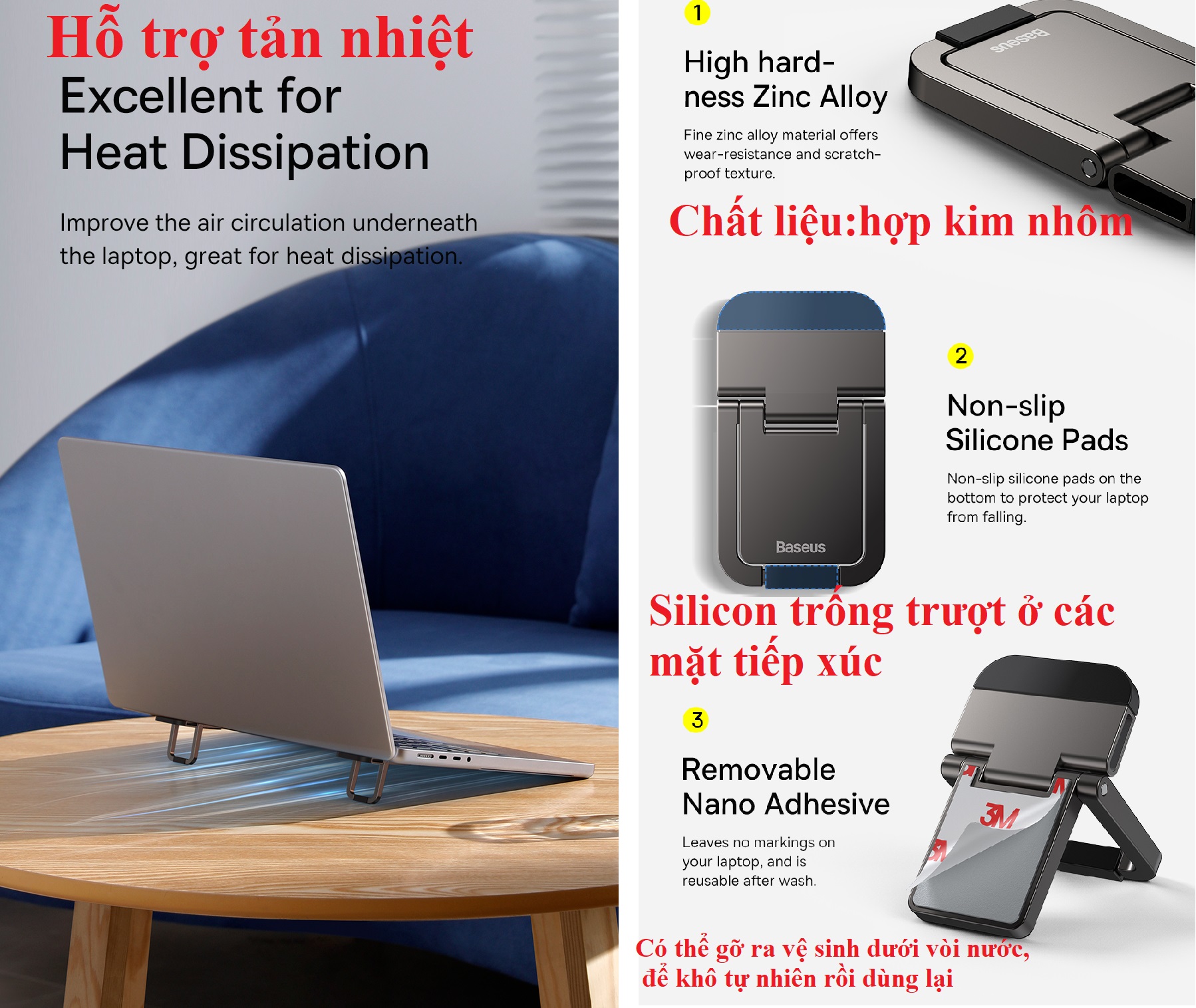 Giá đỡ hỗ trợ tản nhiệt dạng xếp dán thân máy thương hiệu Baseus