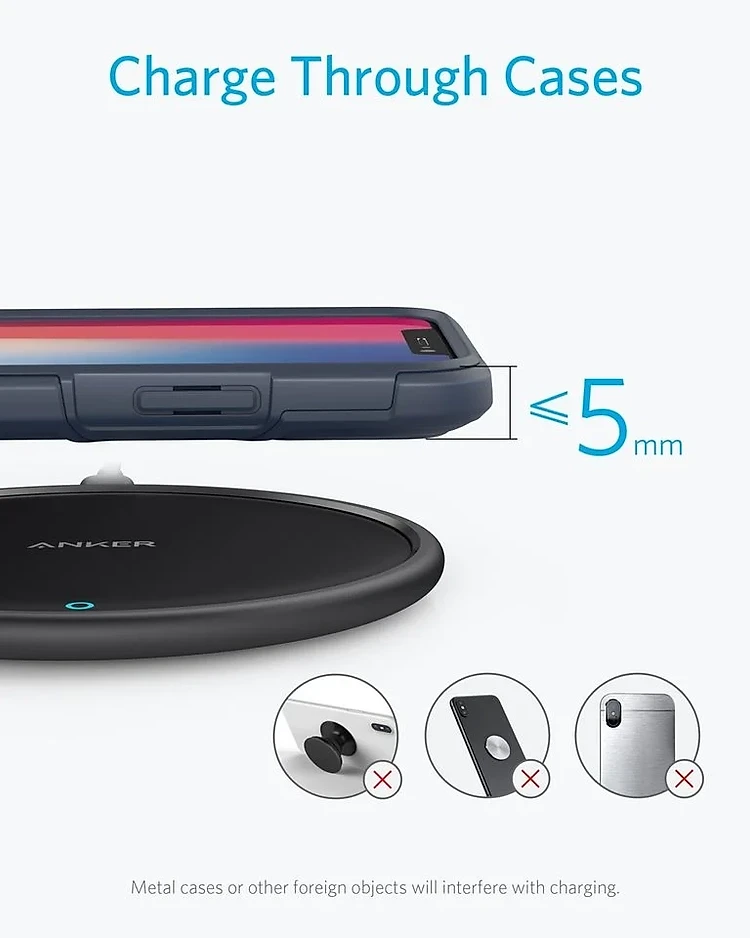 Sạc hỗ trợ sạc cho thiết bị với ốp lưng bằng nhựa có độ dày dưới 5mm.