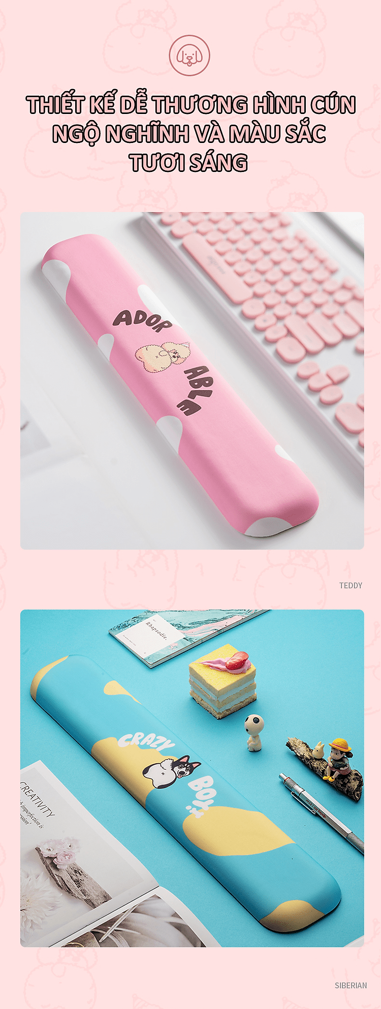 - Kê tay bàn phím hình cún cực dễ thương và sinh động